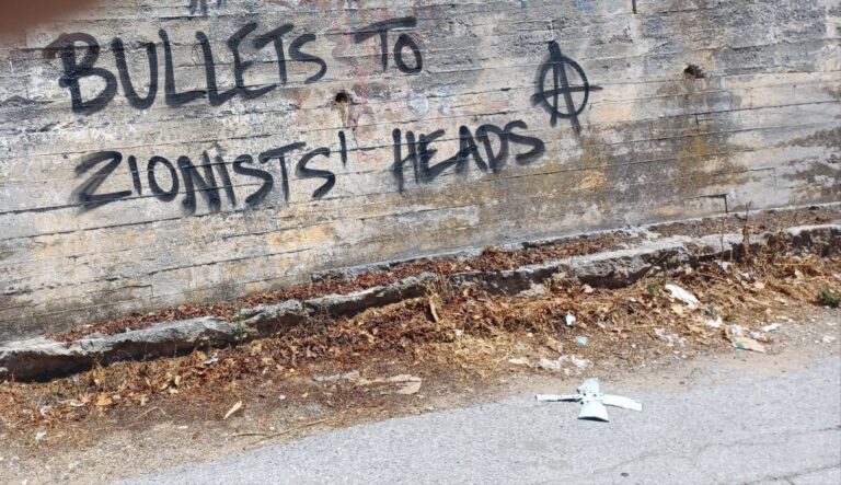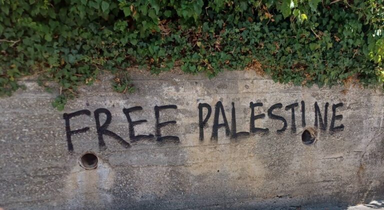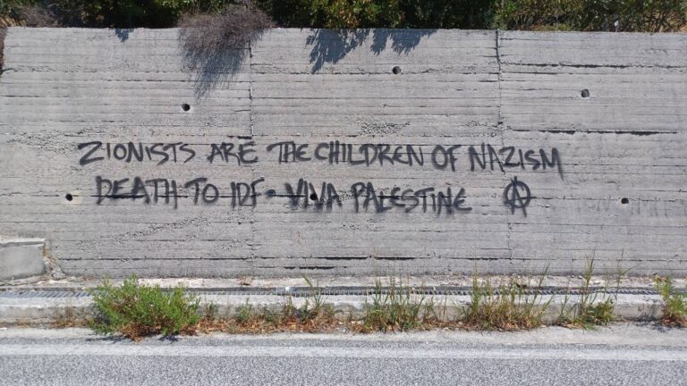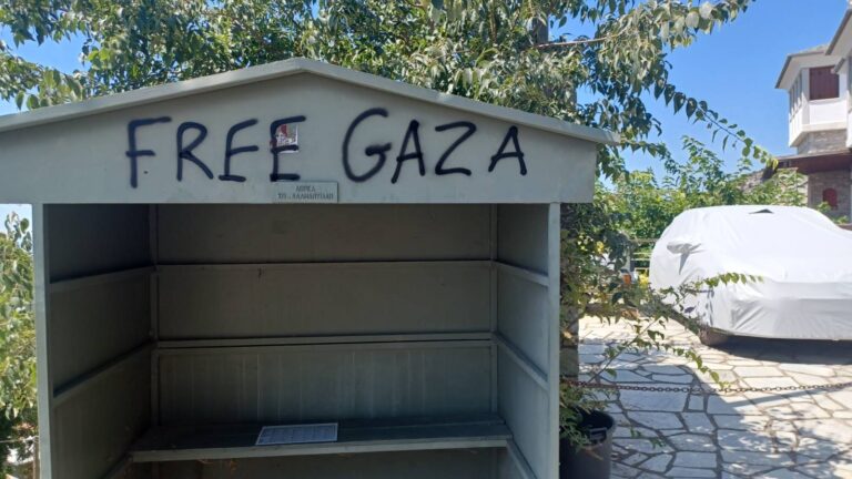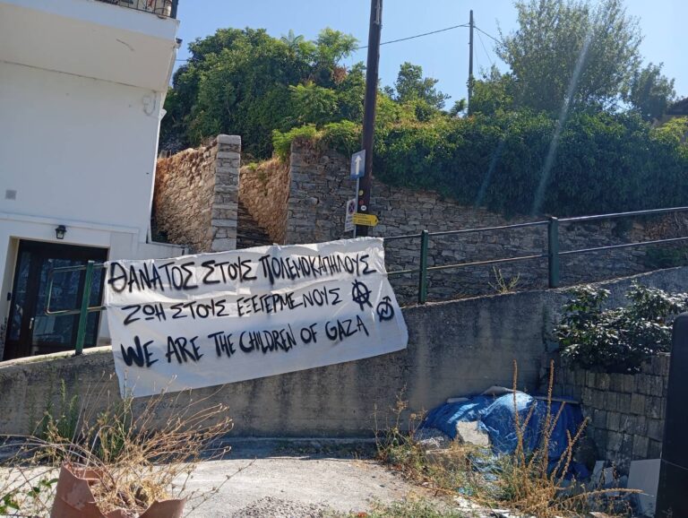 [Volos] Intervensi spanduk dan cat semprot di Pelion terkait isu Palestina
